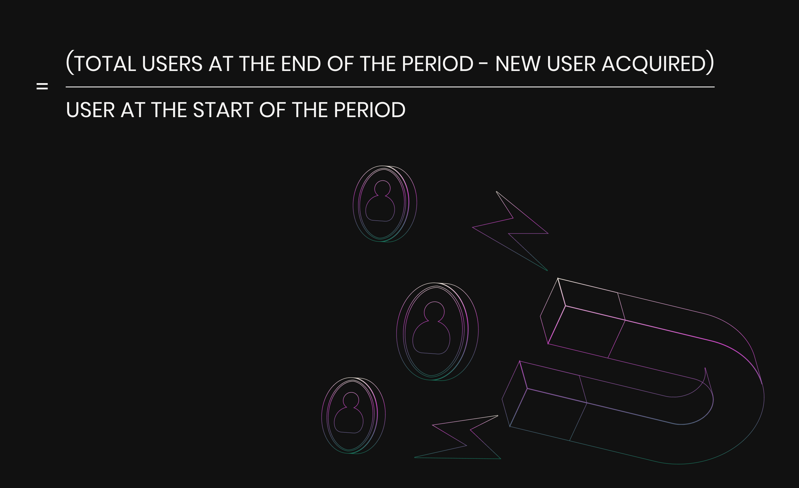 - Churn Rate = (Customers lost ÷ Customers at start of period) × 100