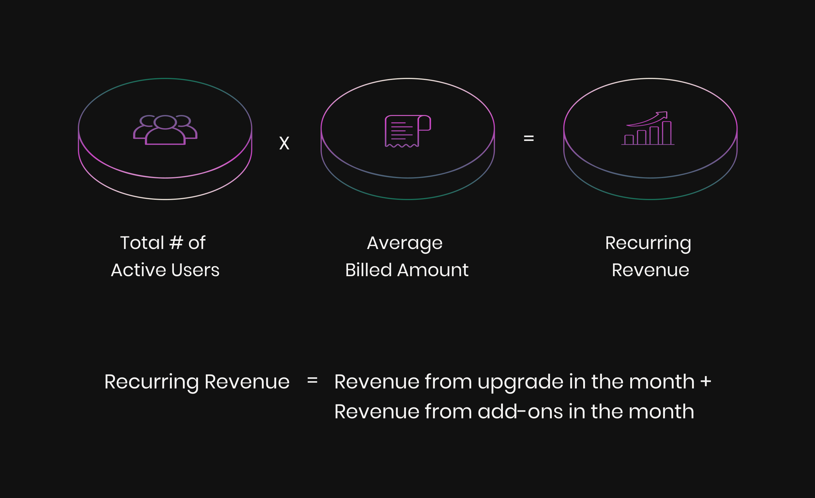 - Annual Recurring Revenue (ARR) = MRR × 12